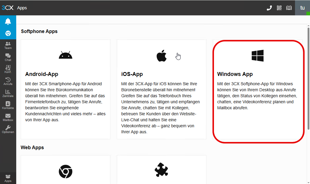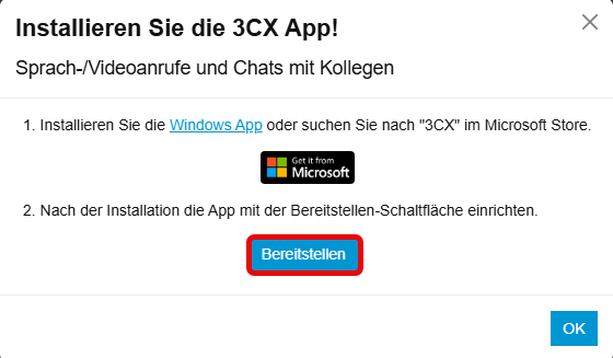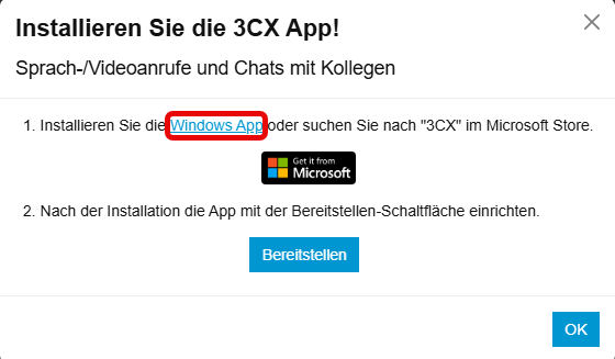 Klicken Sie auf Windows App um den 3CX Client im Microsoft Store zu installieren.
