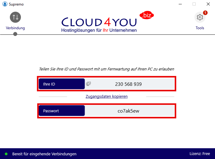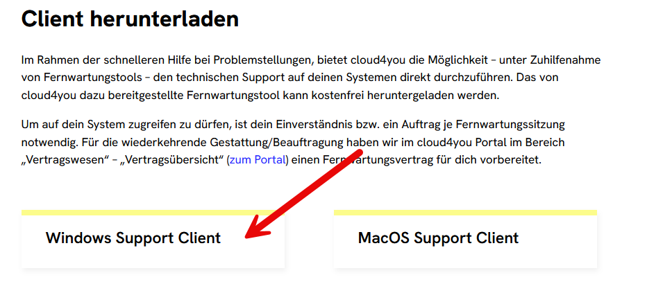 Fernwartungs Client von cloud4you.biz/login/fernwartung/ herunterladen